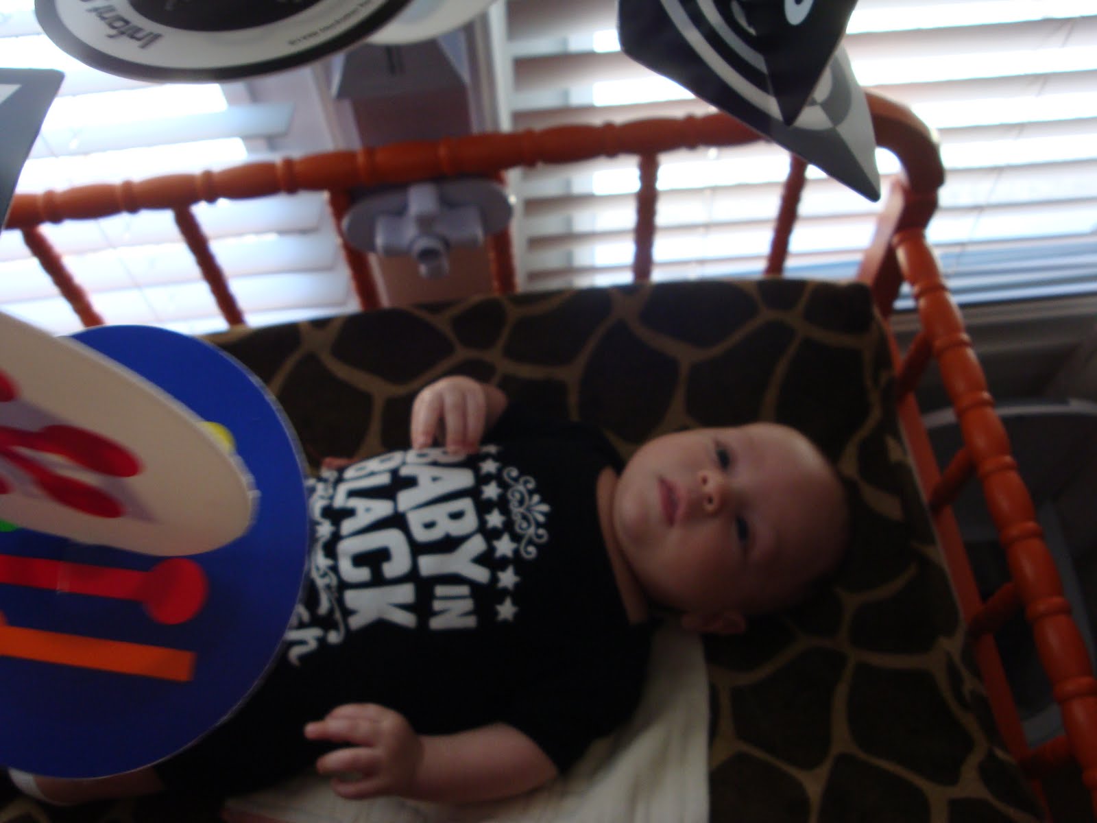 Most days he will happily stare at the mobile in his crib for 10-20 minutes which is an ETERNITY in baby time.