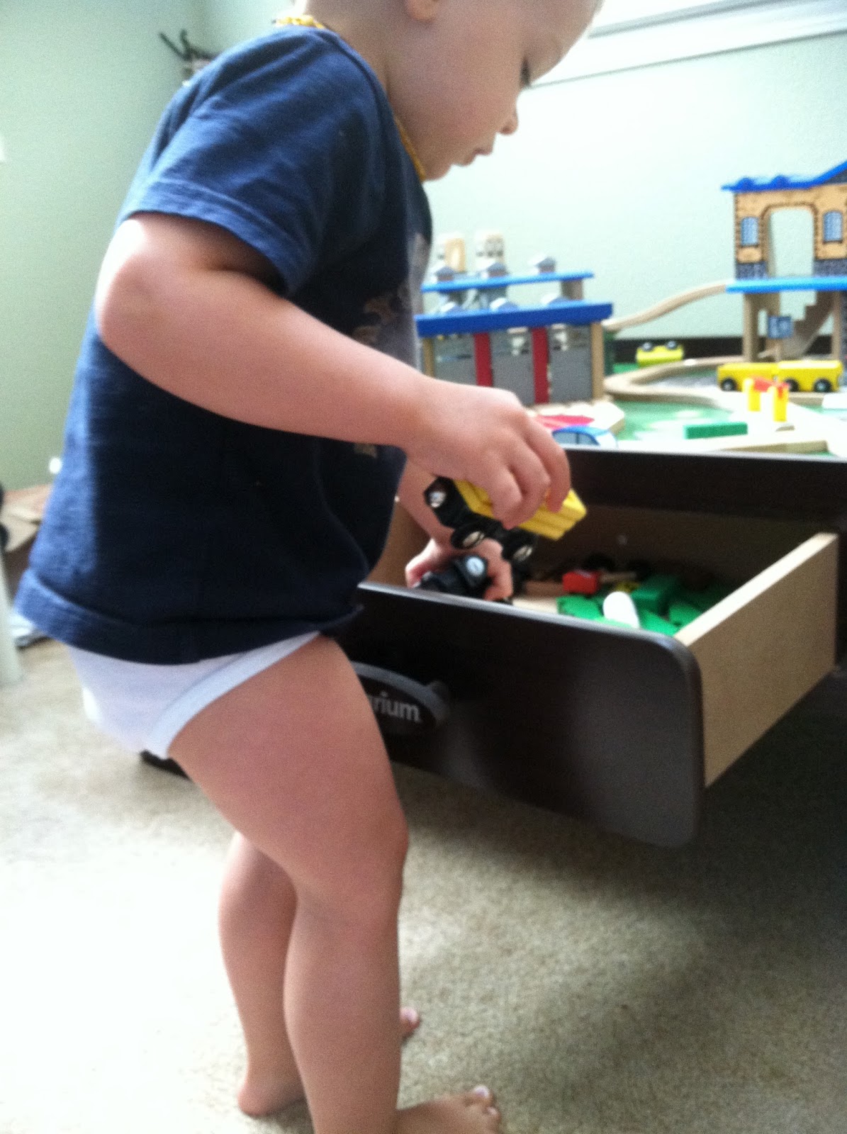 And all that was just before his nap! Basically I'd play with and watch him and about every 30 minutes remind him to "tell me when you need to go potty." Then when he'd start to have an accident, I'd run him to the bathroom to try to get to the potty chair in time for him to finish there (which never actually happened on day 1). Then I'd remind him that his big boy pants needed to stay dry and to let me know when he needed to go potty.